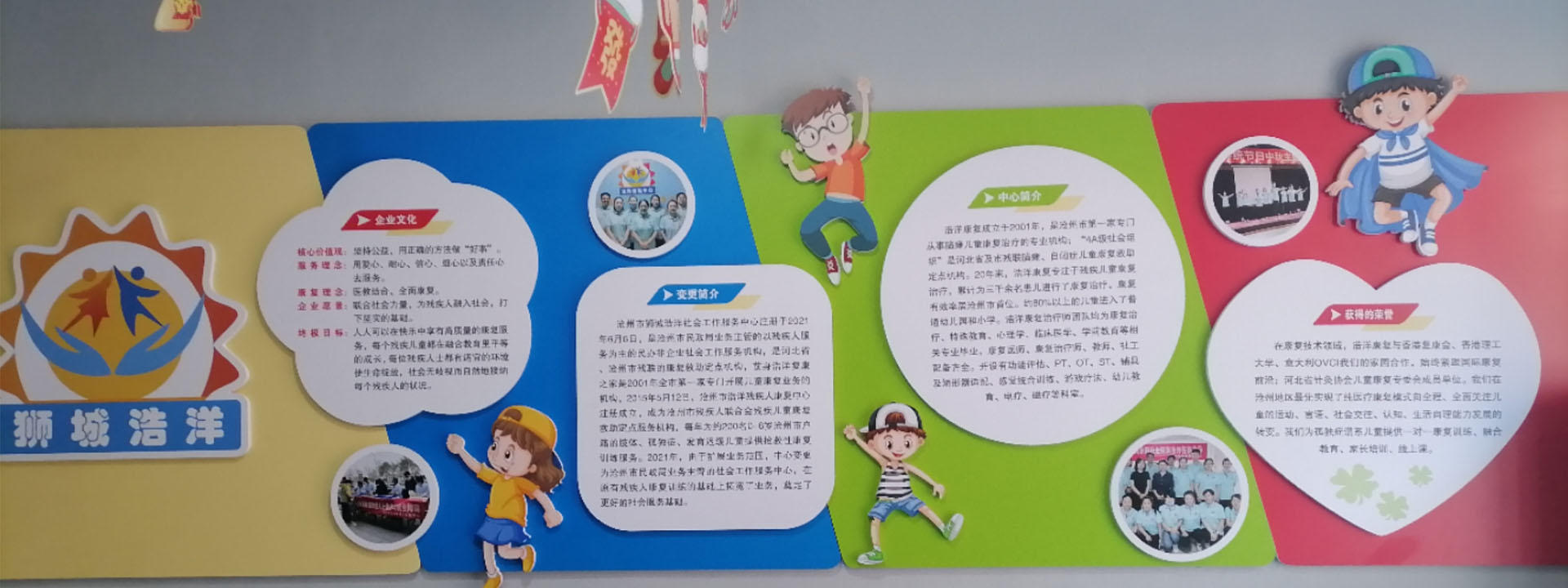 滄州市獅城浩洋社會工作服務中心注冊于2021年6月6日,是滄州市民政局業務主管的以殘疾人服務為主的民辦非企業社會工作服務機構。前身浩洋復康之家是2001年全市第一家專門開展腦癱康復業務的機構,2015年5月12日,滄州市浩洋殘疾人康復中心注冊成立,成為滄州市殘疾人聯合會殘疾兒童康復救助定點服務機構,每年為約200名0-6歲滄州市戶籍的肢體、孤獨癥、發(fā)育遲緩兒童提供搶救性康復訓練服務。2021年,由于殘聯不能再作為業務員主管單位,中心變更為滄州市民政局業務主管的社會工作服務中心,在原有殘疾人康復訓練的基礎上拓寬了業務,奠定了更好的社會服務基礎。